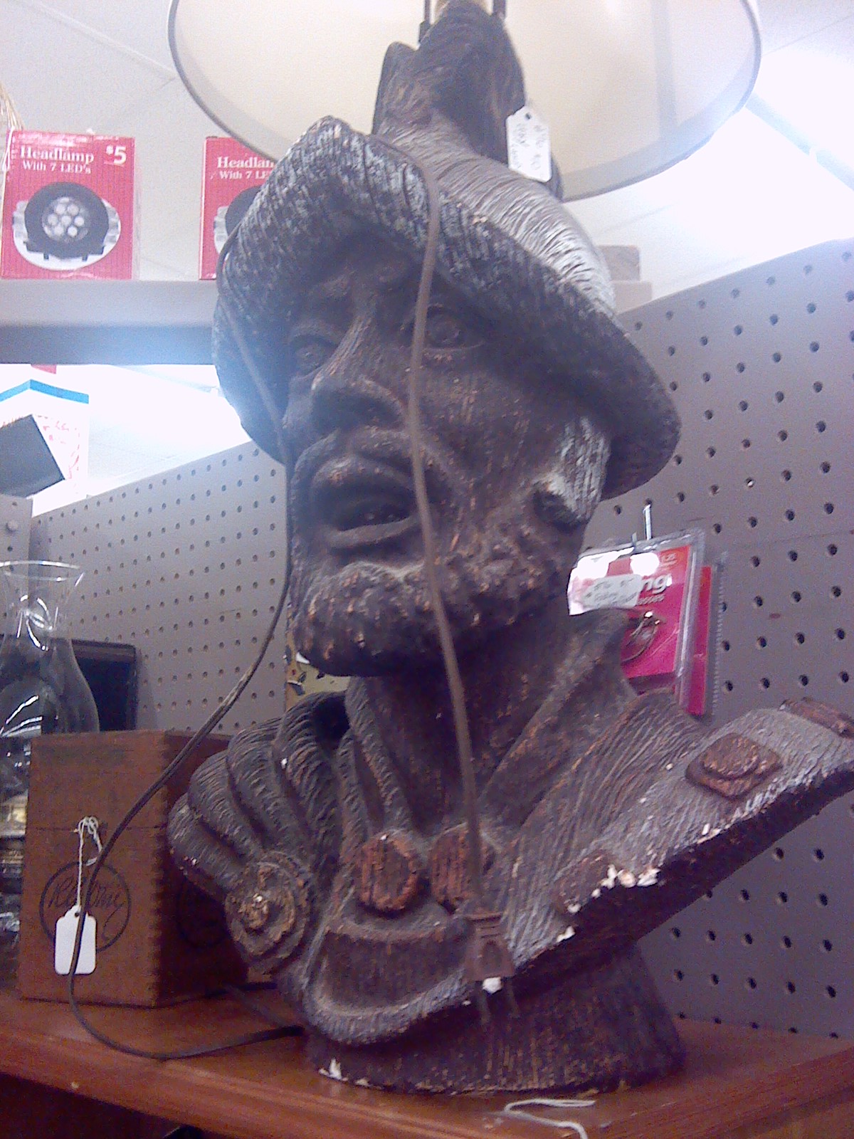 That is a totally believable origin story for this lamp I saw at a flea market a little over a week ago.