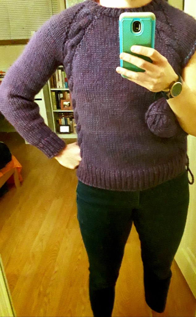 Despite yarn and dye lot misadventures, I finished it in about five weeks, and I now have the thickest, warmest, and hopefully not the itchiest wool-acrylic blend sweater that is really only appropriate for days like today when it’s 15 degrees outside.