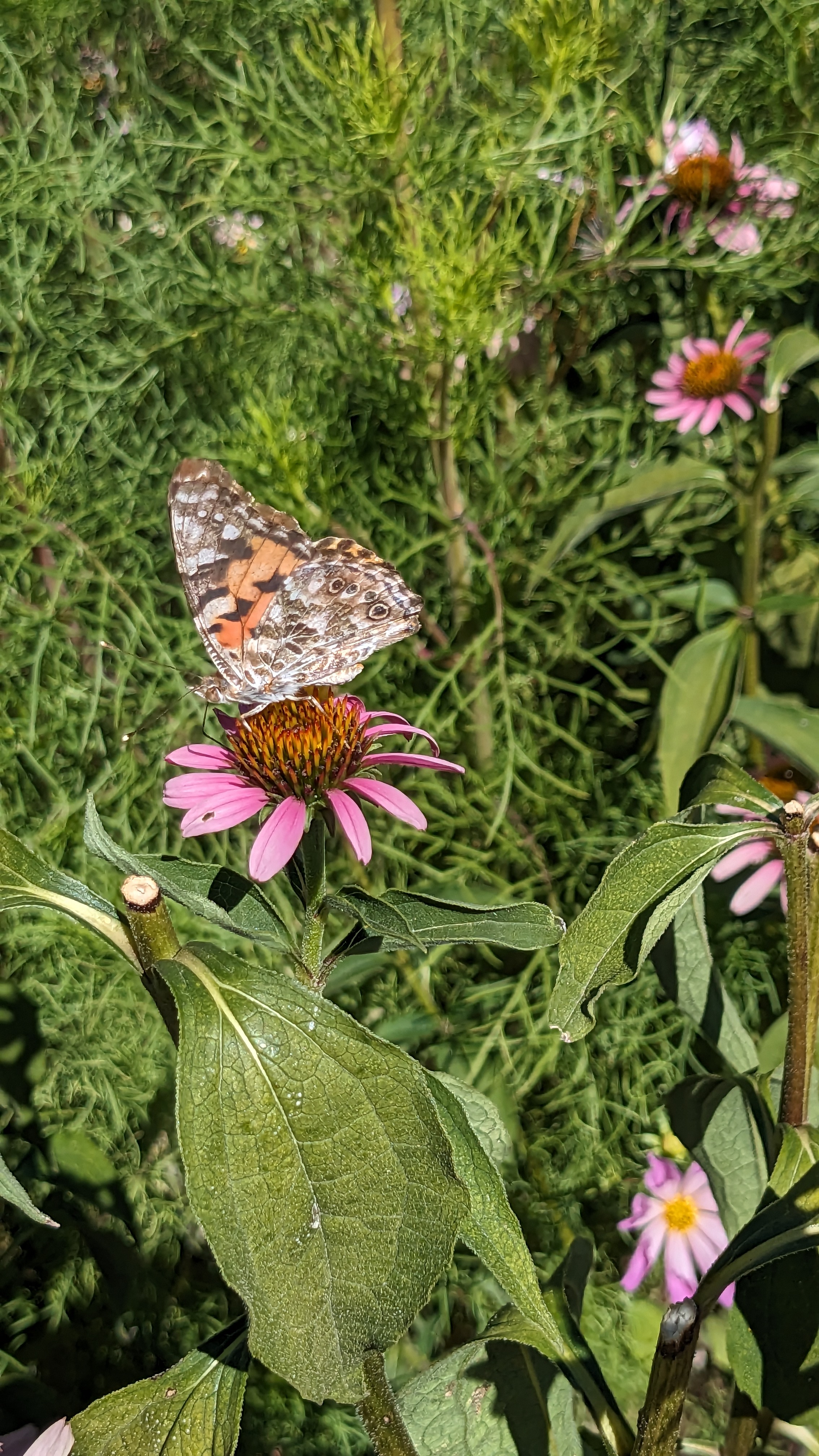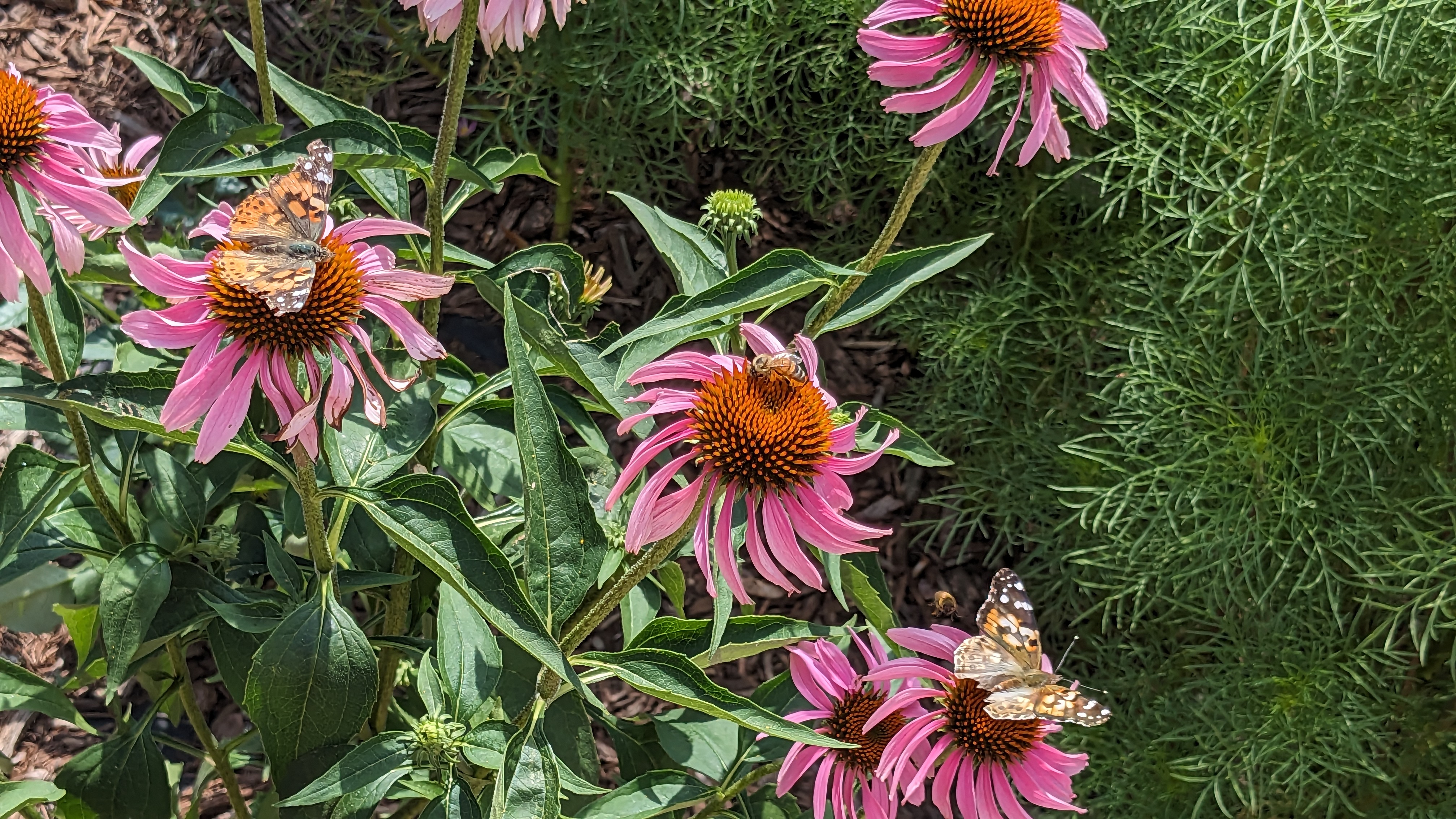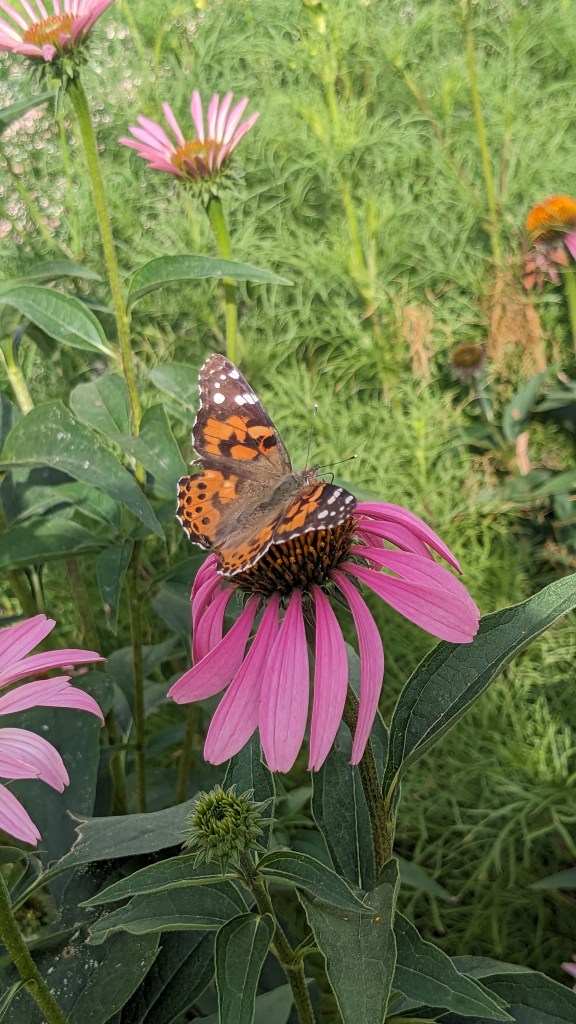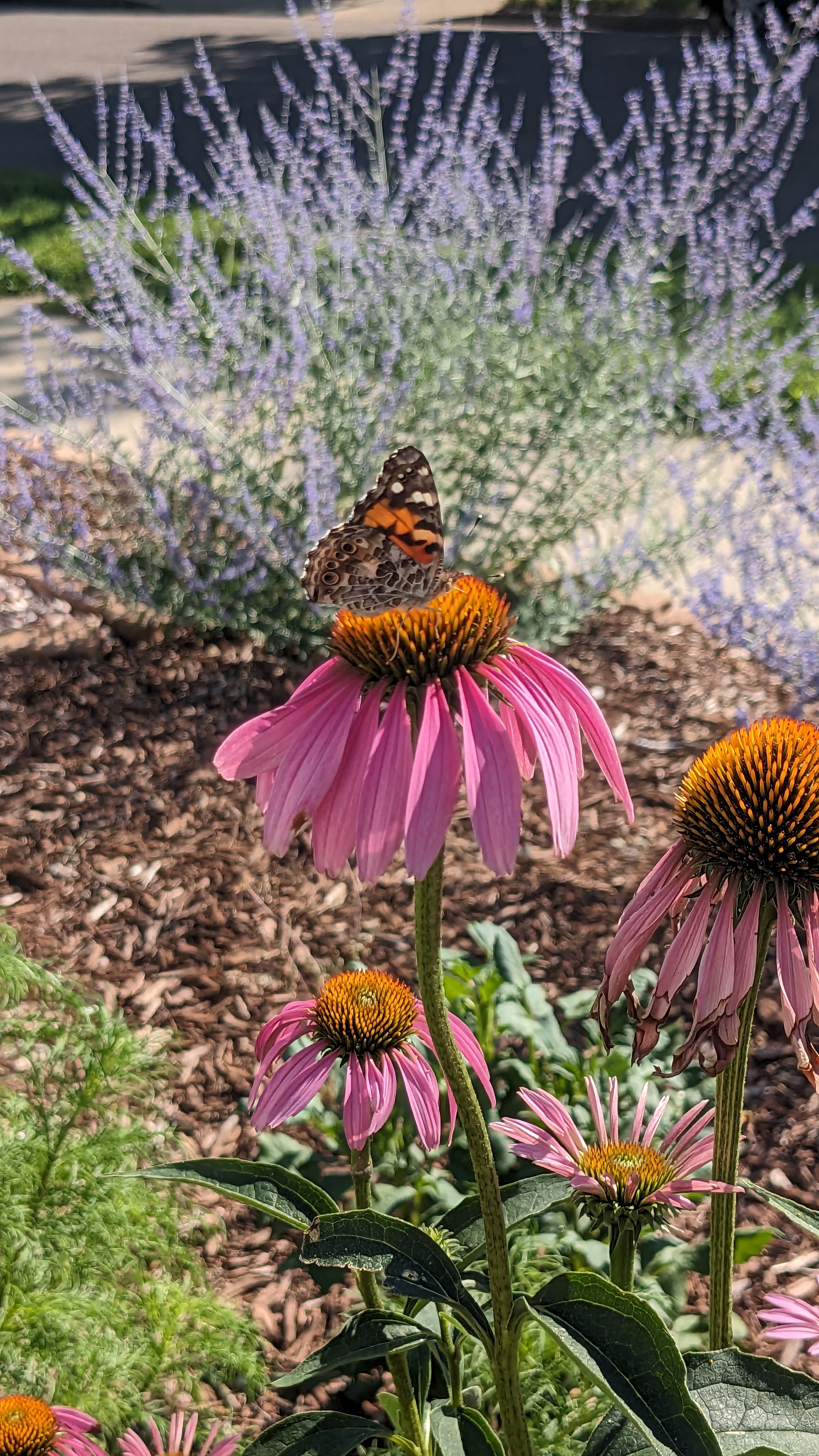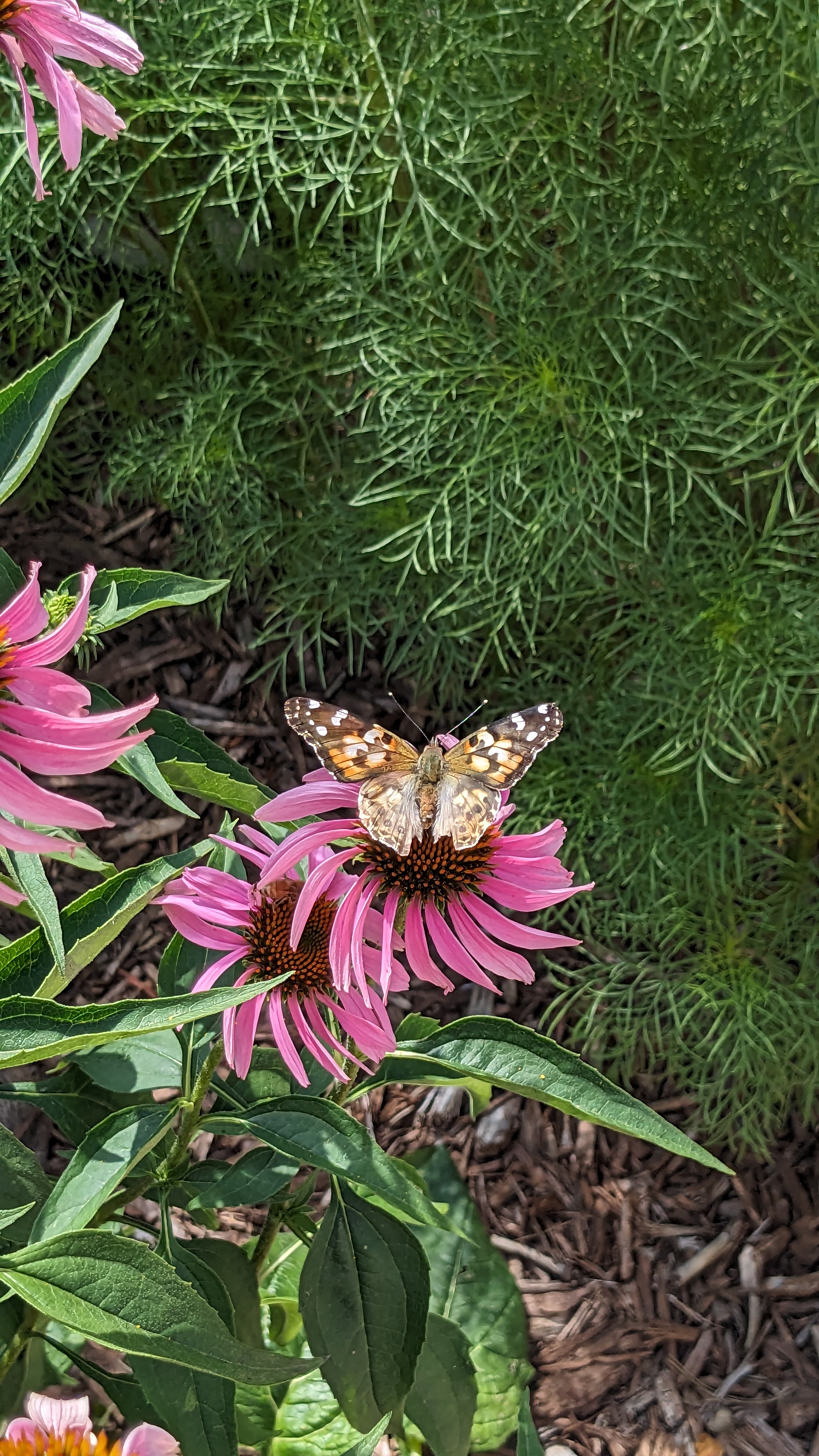 Summer 2022, I fell into gardening when I embarked on a project to transform my front yard from an abandoned-looking dirt heap to something that looked welcoming and, simply, nice. This summer, the garden was more full — of plants and color — and that color drew some unexpected visitors. Partway through July, I started seeing butterflies in the garden almost every day. Mostly painted ladies, they loved my echinacea plants. Every morning became an adventure in butterfly watching. I think the record for one day was five or six butterflies. Now I’m calling the front yard my accidental butterfly garden.