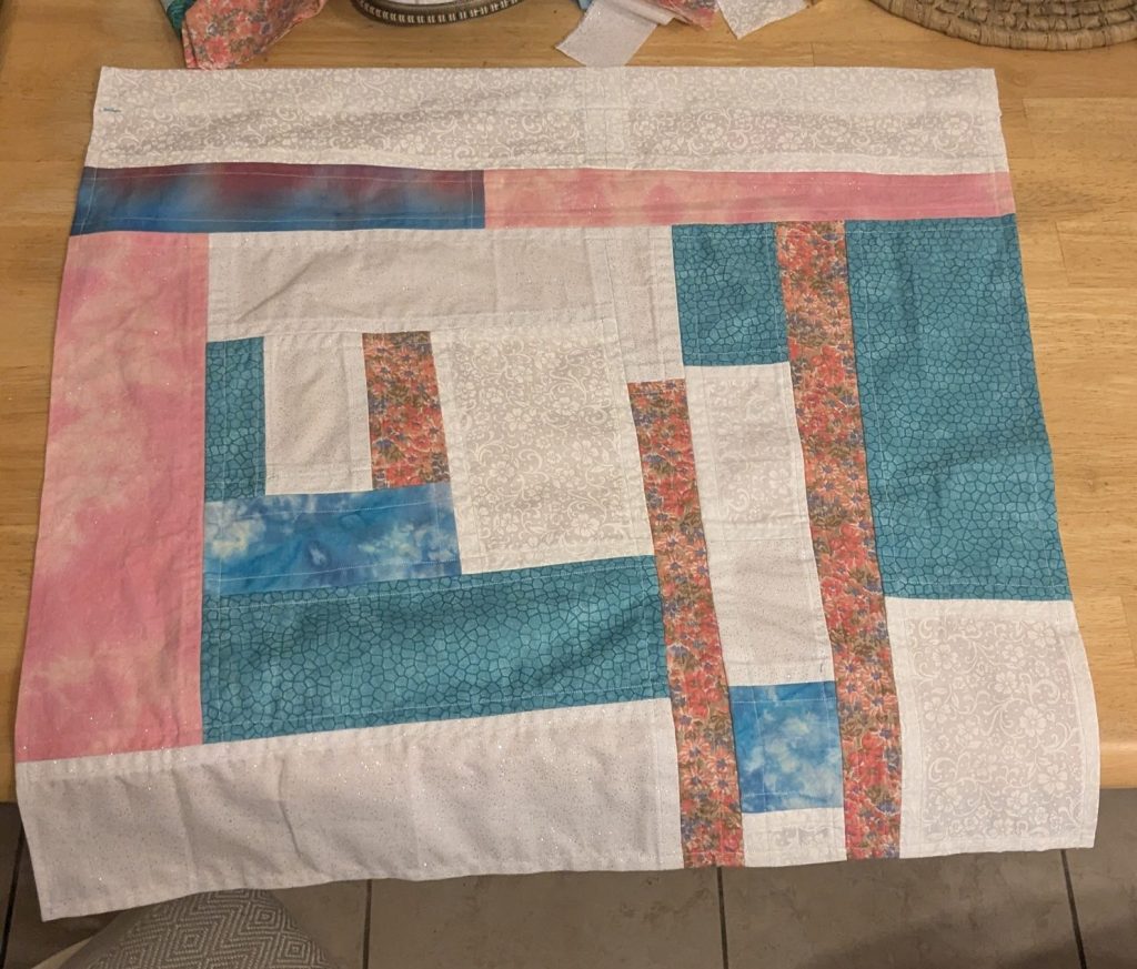 I started this project in 2023 after staring at the background fabric hanging over a blank spot on my living room wall for a few weeks. The mountains are machine-sewn in place. The embroidery is all hand-done. I took this project with me just about everywhere for the two years that I worked on it: my garden, public parks, camping, trips to visit family, etc. I finished it by stretching it over a canvas and stapling it in place. It now hangs in that same formerly blank spot on my living room wall.