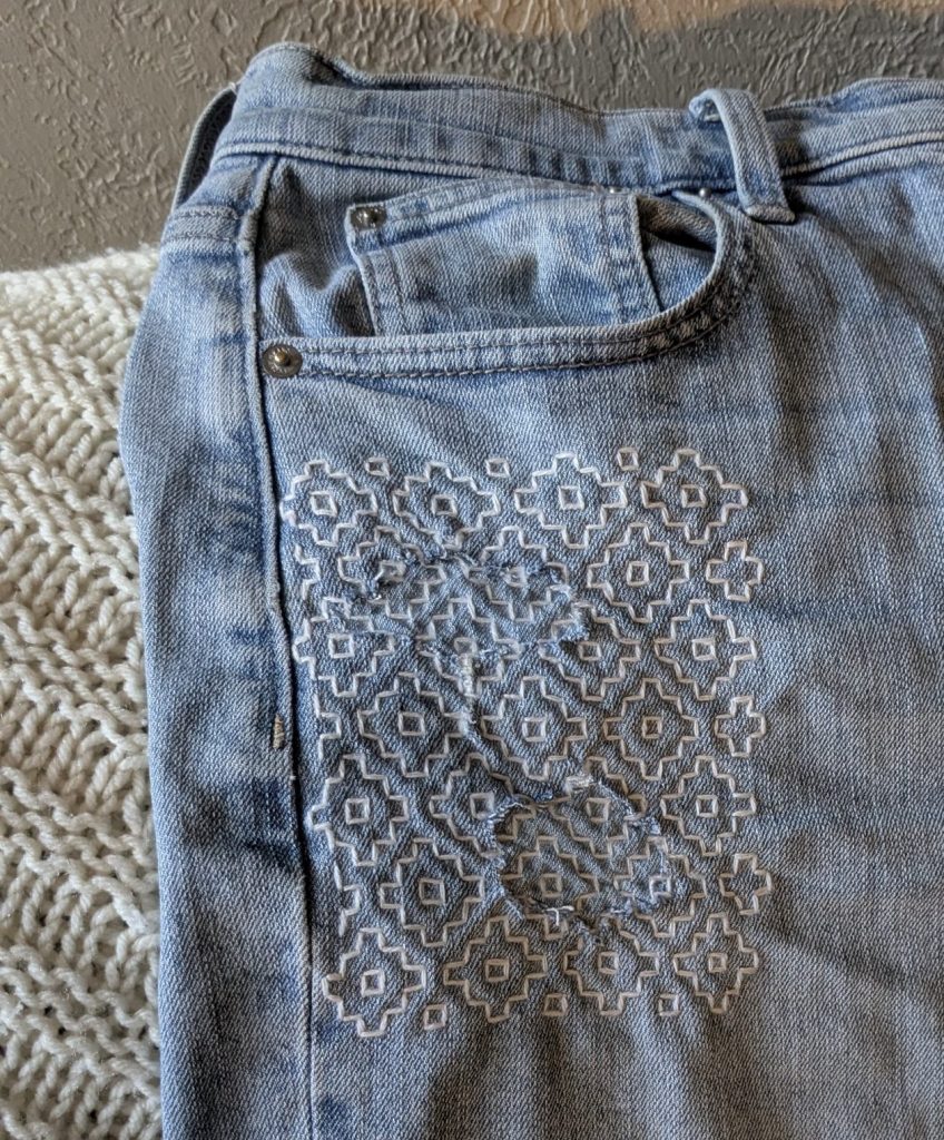 One gift of the internet is stumbling across textile and embroidery techniques that I otherwise knew nothing about. This fall, I tackled a bojagi (Korean patchwork) curtain for my front window, and over this holiday break, I patched a pair of pants with sashiko embroidery, a Japanese technique that uses running stitches to create functional, decorative designs. I’m looking forward to trying more sashiko in the new year.