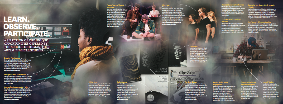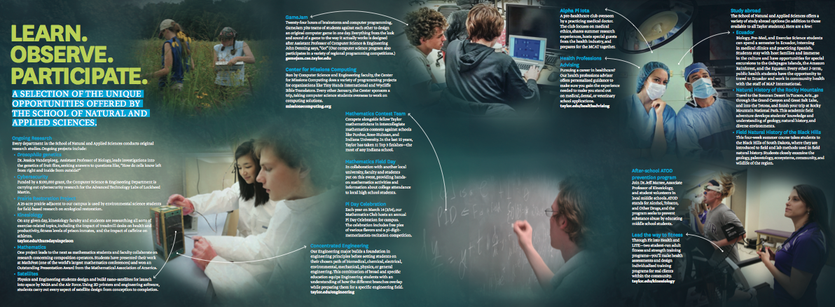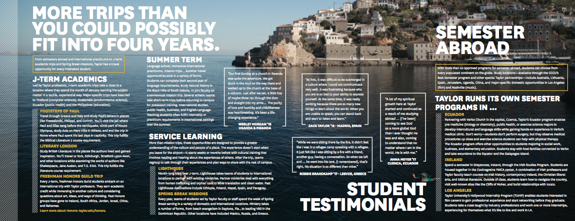 I developed each of these pieces — from concept to completion — for Taylor University’s student visitor program, collaborating with designers for the final look and feel.